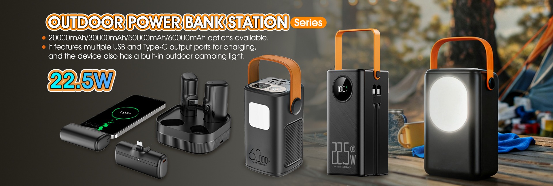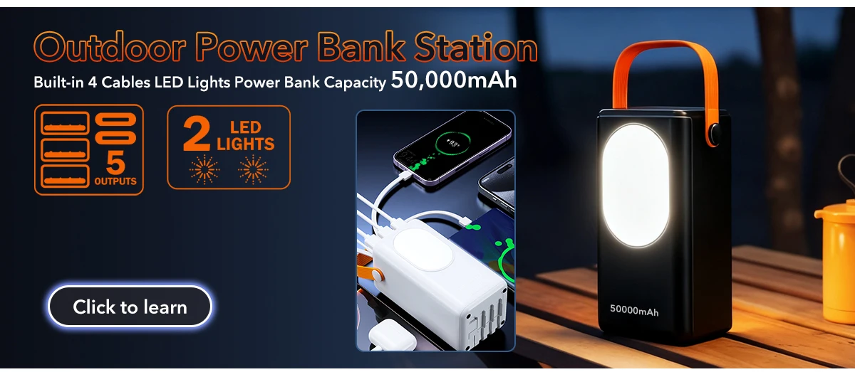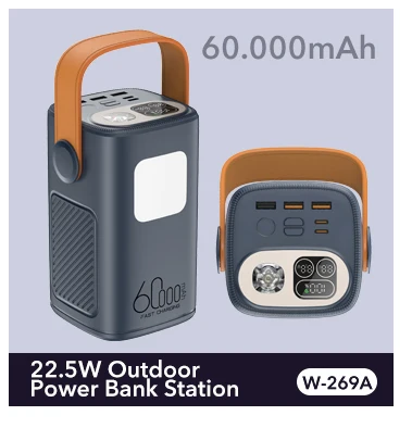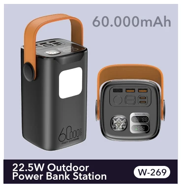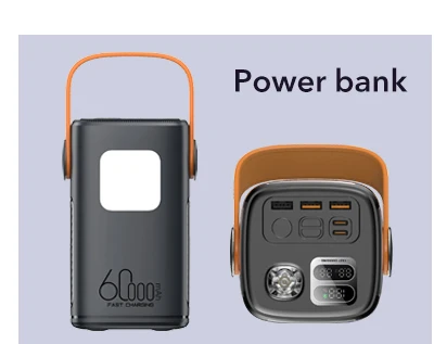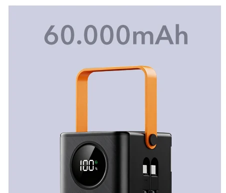 2025 New Trending PD22.5W Banco de energía de carga rápida con cordón de alta capacidad 60000mAh Powerbank para exteriores