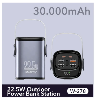 Producto de tendencia 50000mAh Powerbank Pantalla LCD 4 Cables USB Pd 22,5 W 50000mAh Banco de energía de carga rápida con mango