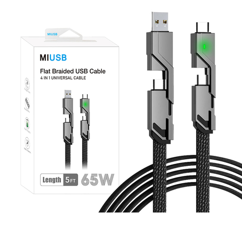 1.5 מ '4 ב 1 USB טעינה כבל נתונים טעינה מהירה כבל שטוח קלוע 4 ב 1 כבל מטען לטלפונים אנדרואיד